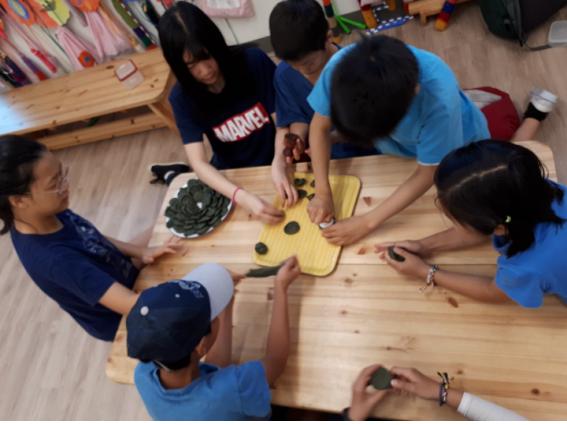 오물조물 떡 주물러 예쁜 모양찍고 맛나게 냠냠.- 1학년부터 9학년까지 모두 모여.