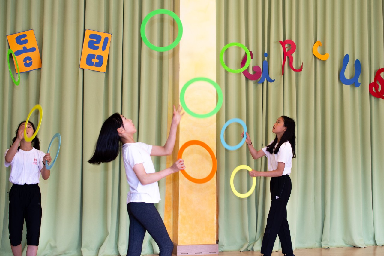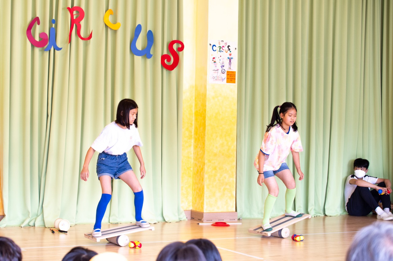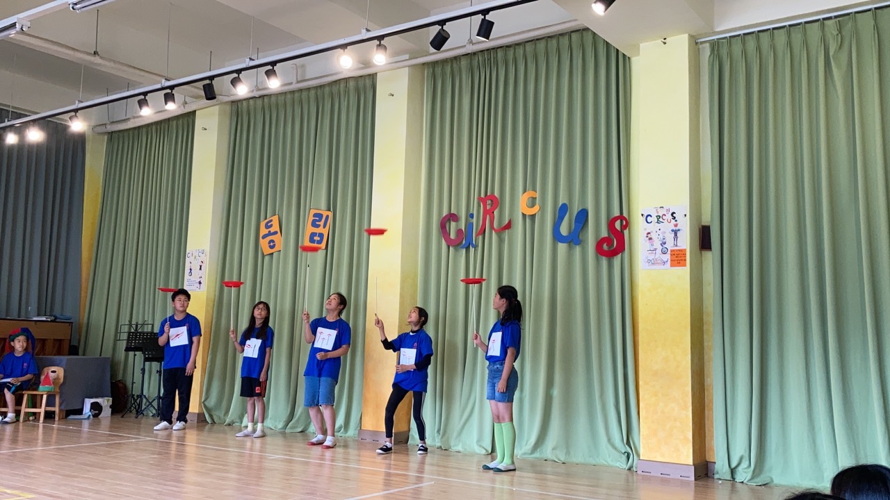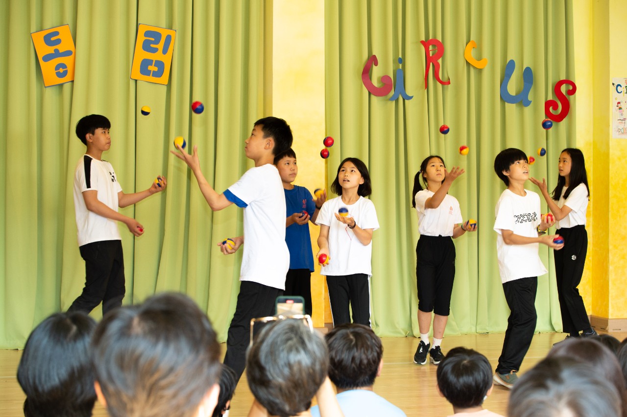 6학년은 4학년때부터 교실에 서커스 도구들을 가져다 두고 쉬는 시간마다 손에 익히기 시작했습니다.