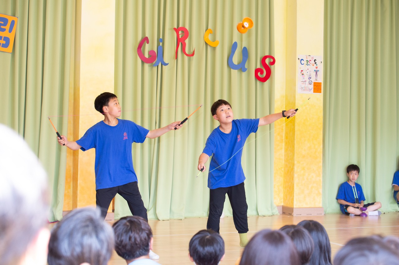 저글링, 접시돌리기, 줄넘기, 디아블로, 링, 롤라볼라, 마술, 아크로바틱, 외발자전거 등을 본인들이 구성하고 앙상블, 리코더, 피아노로 친구들 움직임에 맞추어 직접 연주하며 함께 생생하고 멋진 공연을 보여주었습니다.
