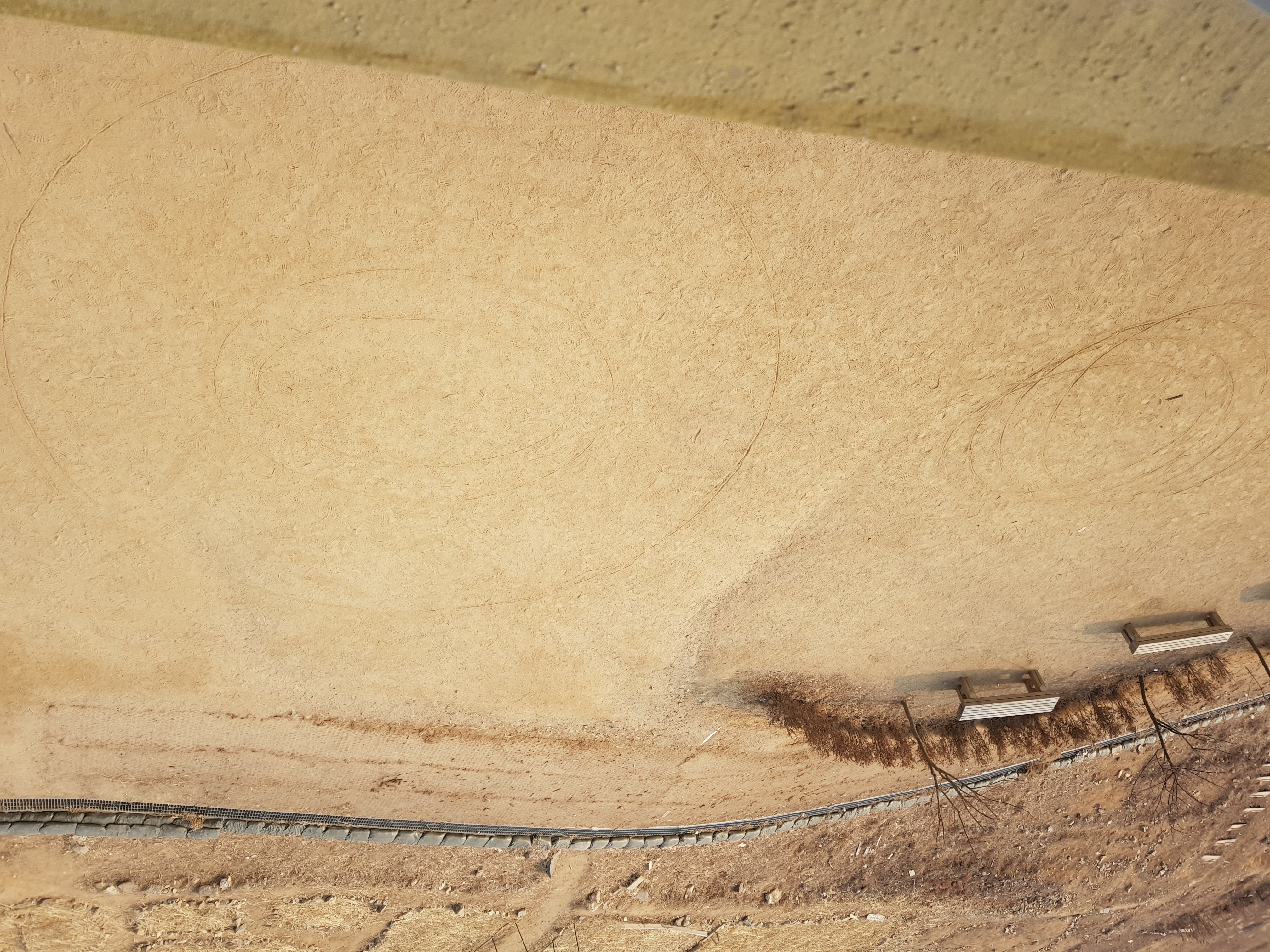 운동장에 커다란 원들이 생겼습니다. 해마다 이 원들의 진하기가 다릅니다.