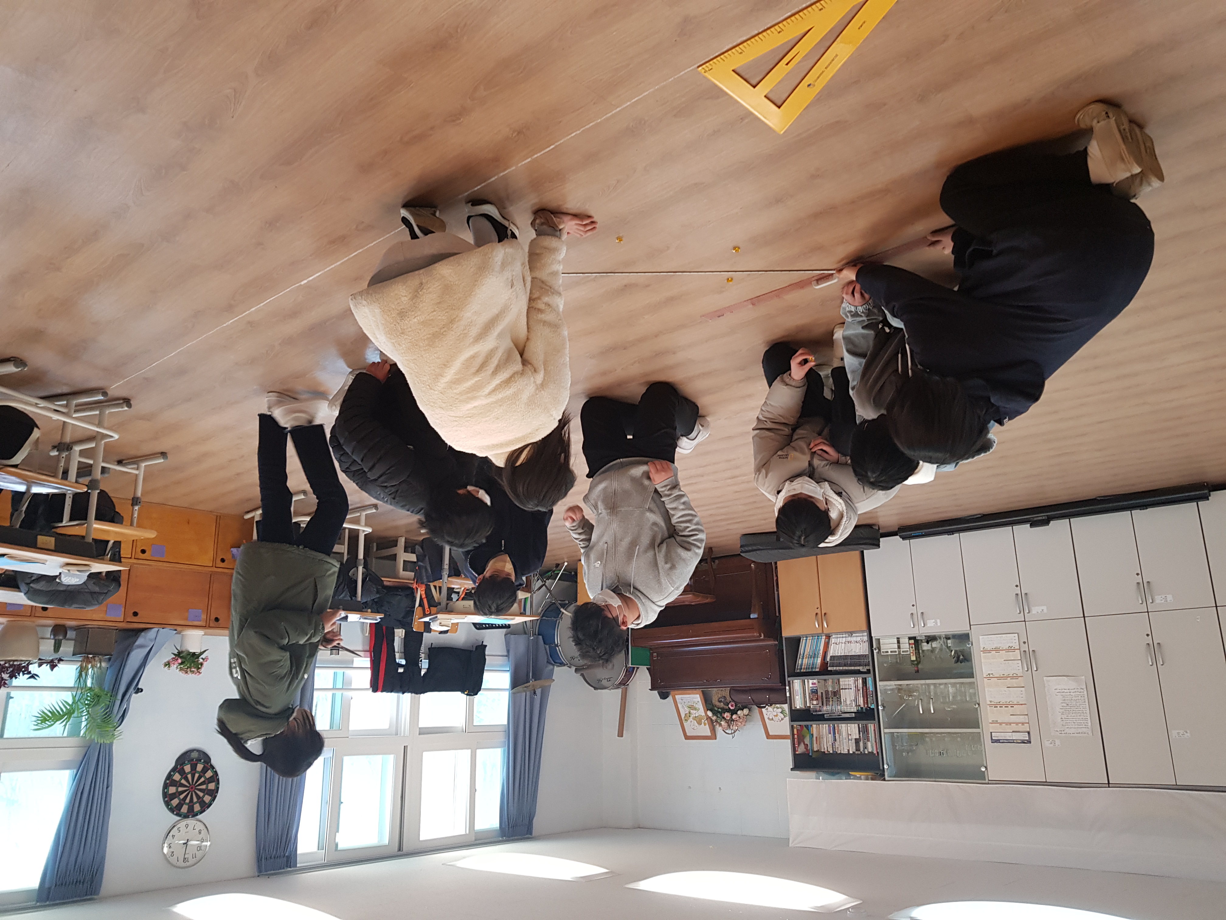 추운 2월 8학년의 플라톤 도형을 배우고 온 학생들이 공간 감각을 충분히 찾아가는 활동을 합니다.