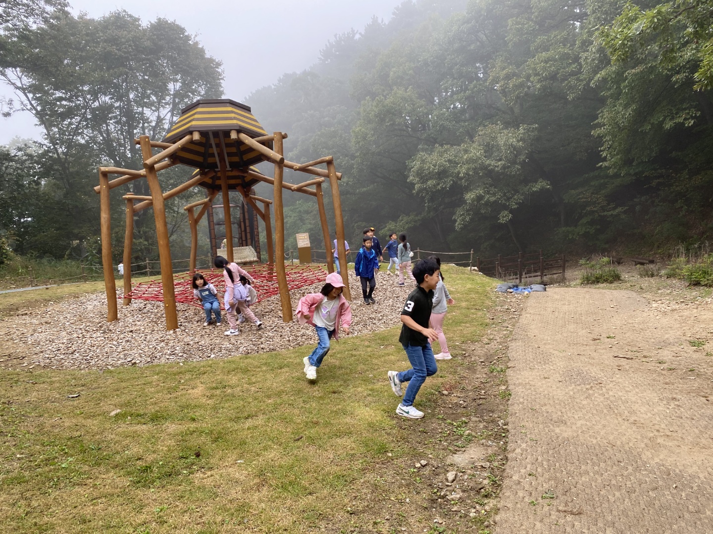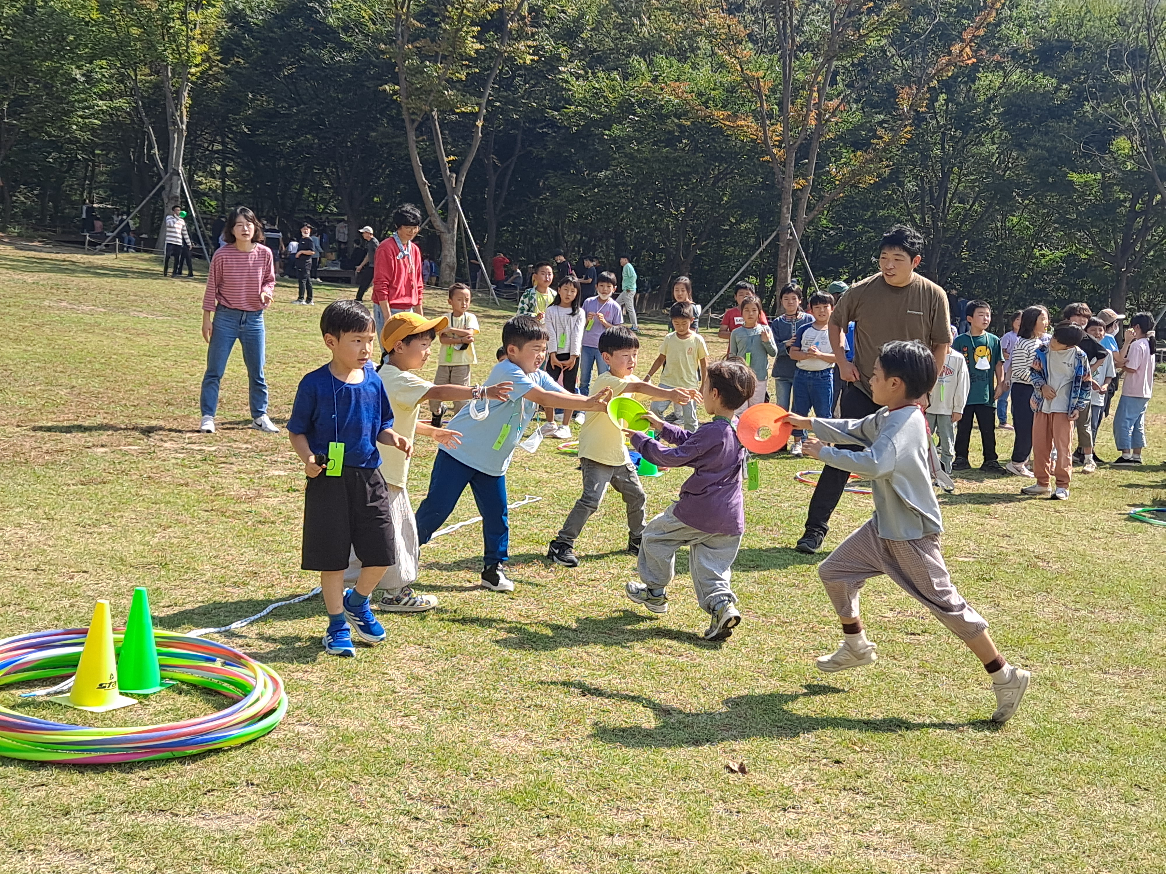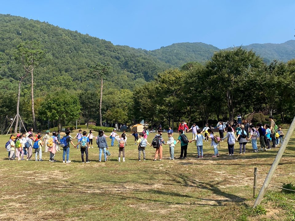 1학년, 2학년, 3학년 아이들이 함께 어울려 용인 자연휴양림으로 소풍을 다녀왔어요.