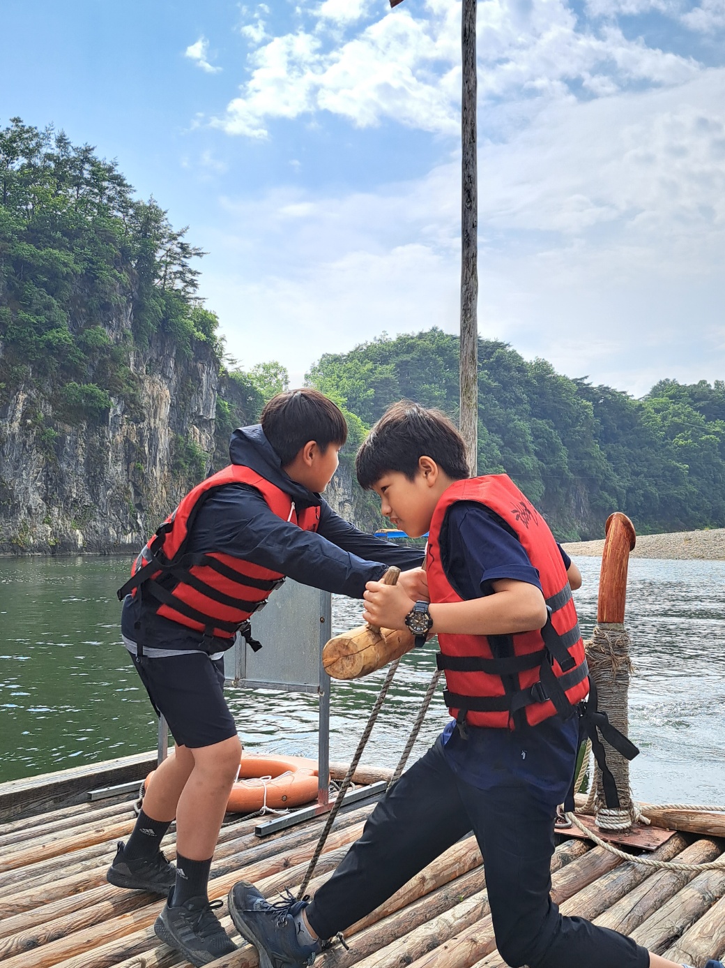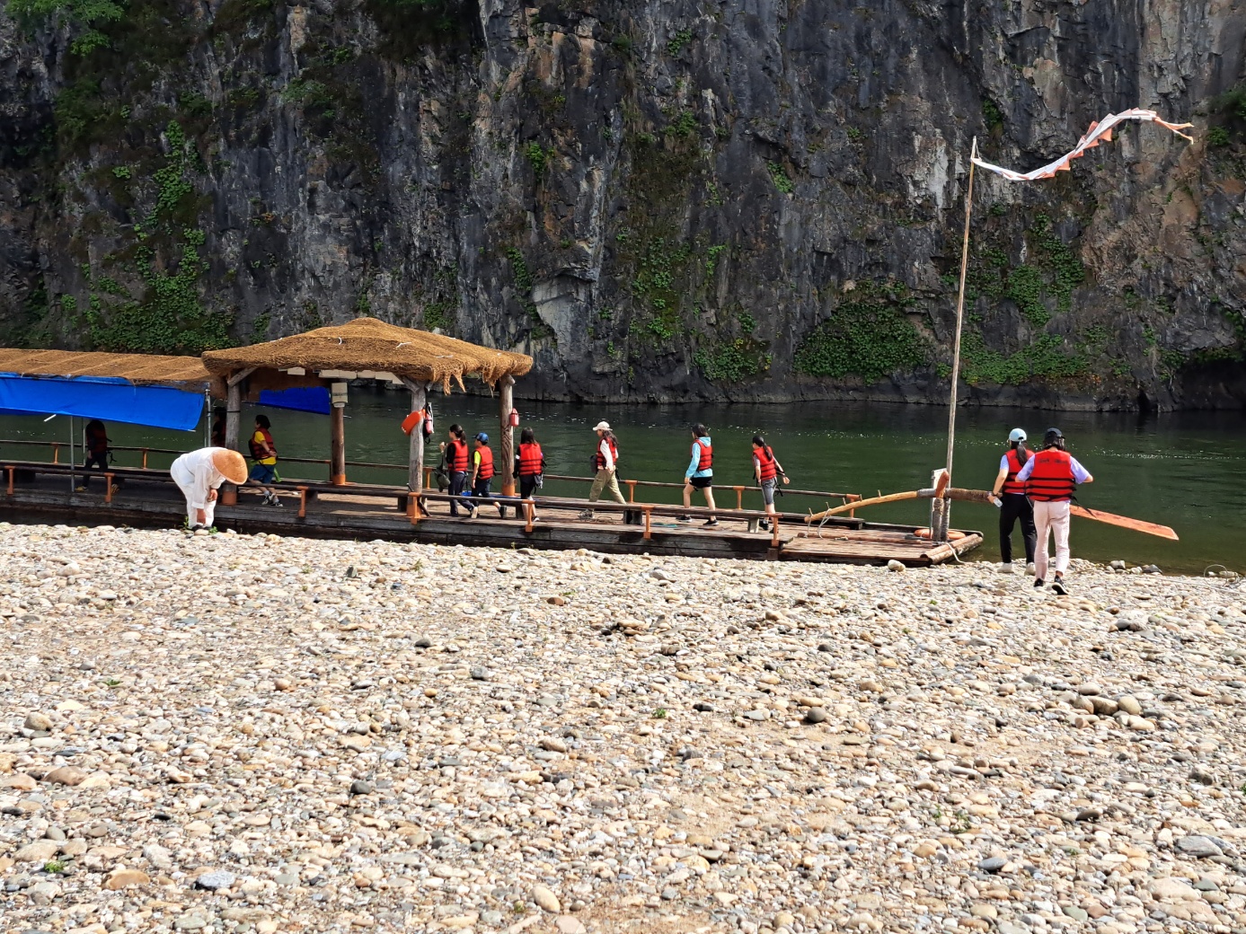 뗏목을 타러 갔더니 비가 그치고 해가났다.