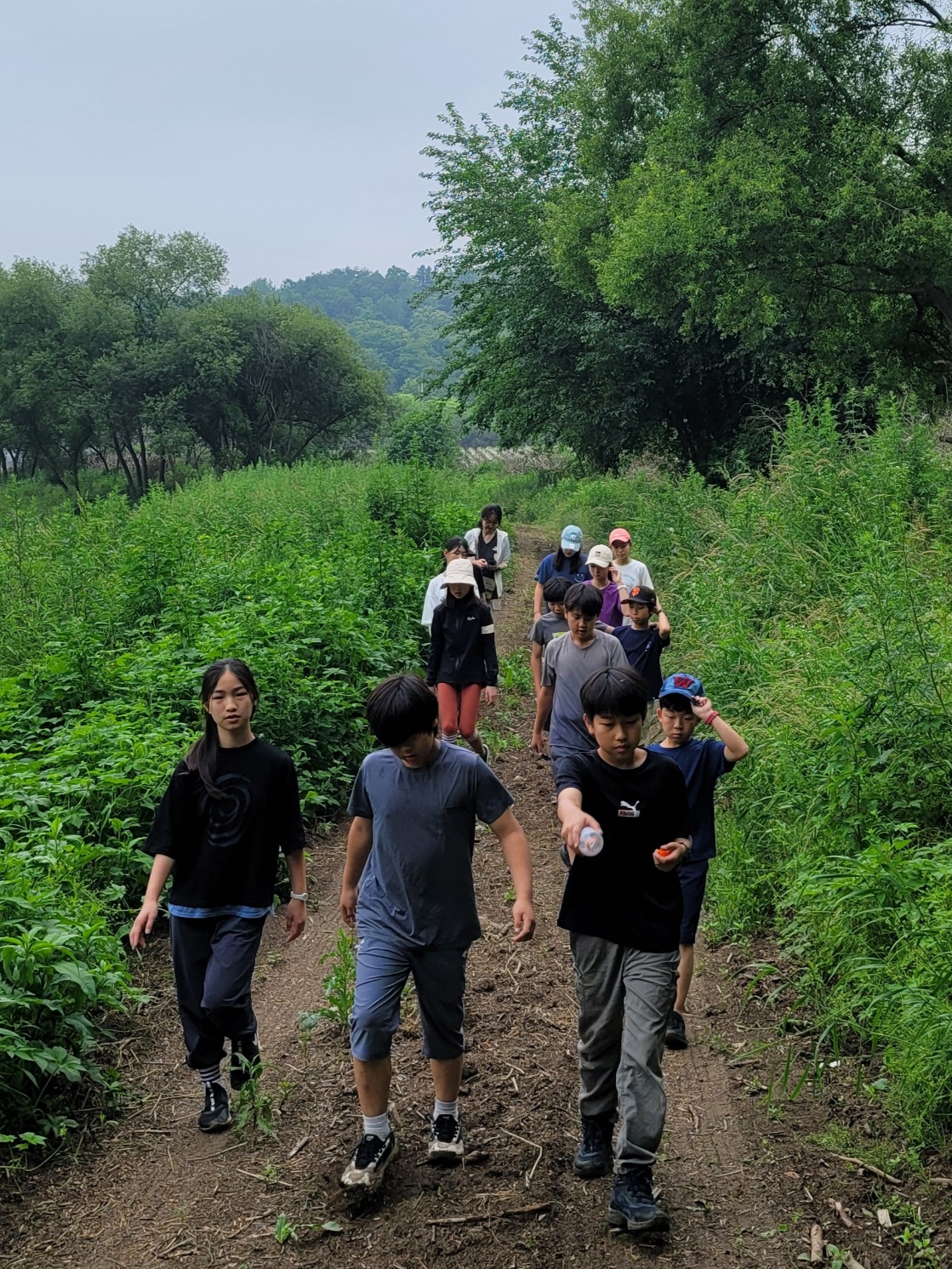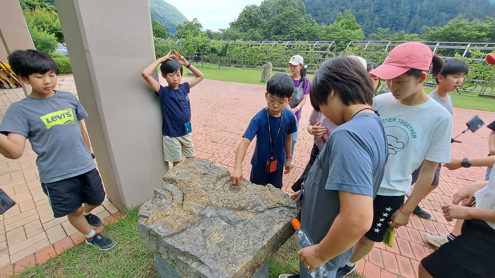 아이들은 선생님이 발에 화석이 채인다고 하셨는데 없어서 실망했다.