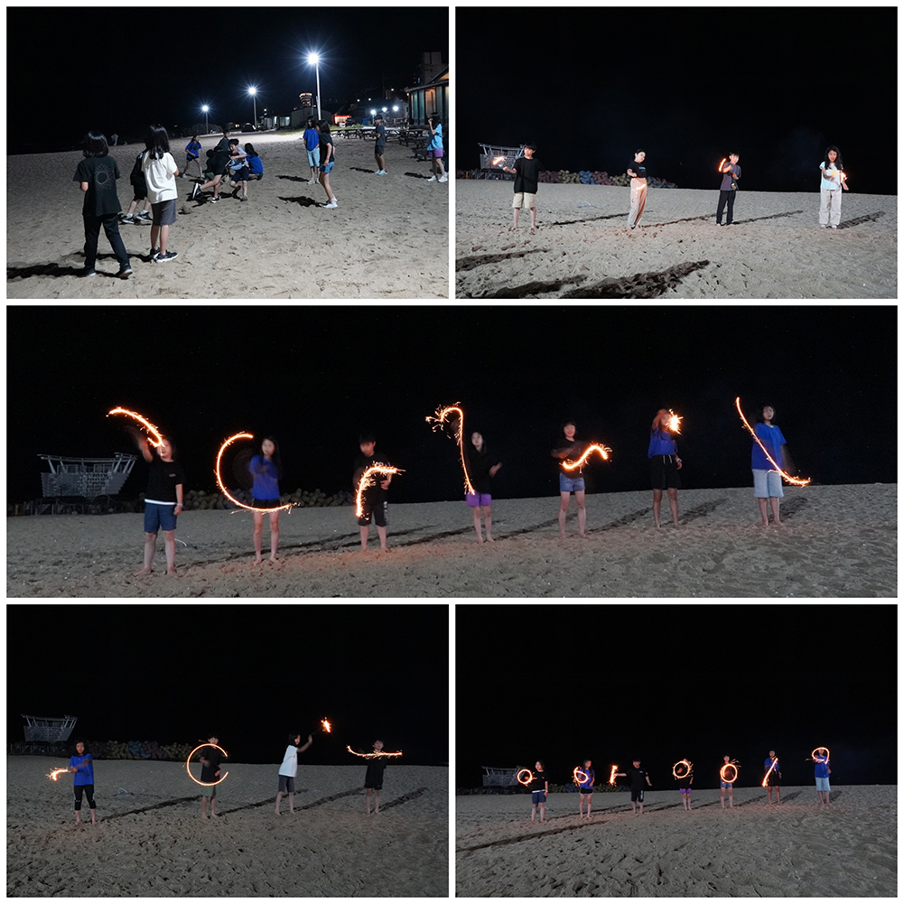 바닷가 모래밭에서 낮에 봤던 씨름도 해보고